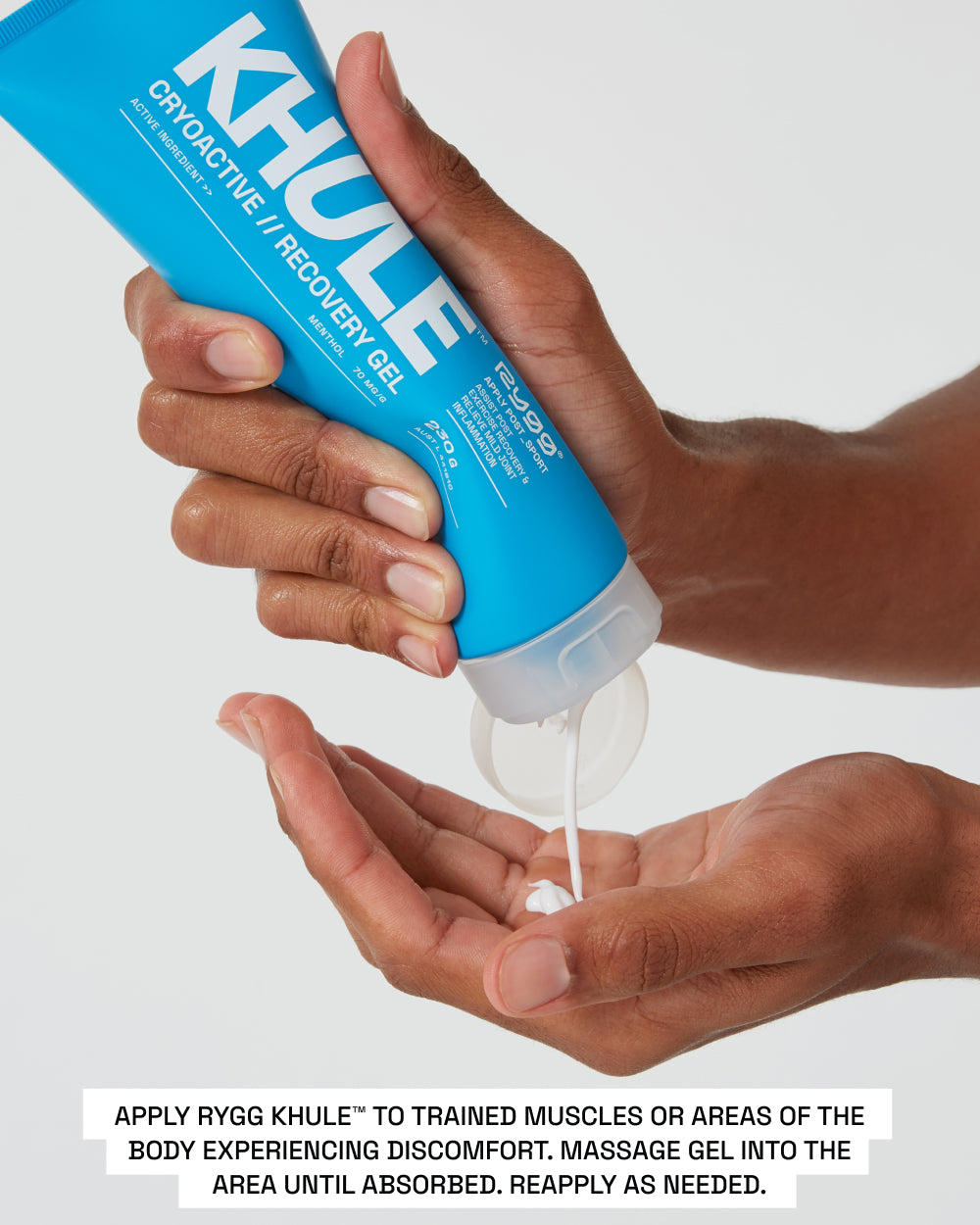 Engineered to go arctic, Rygg KHULE™ Cryoactive Recovery gel was created to become a staple in your recovery protocol. Delivering an intense blast of menthol in a convenient, fast-absorbing, refreshing formula. Assist post-exercise recovery, relieve mild joint inflammation, and help reduce symptoms of muscle sprain with Rygg KHULE™.